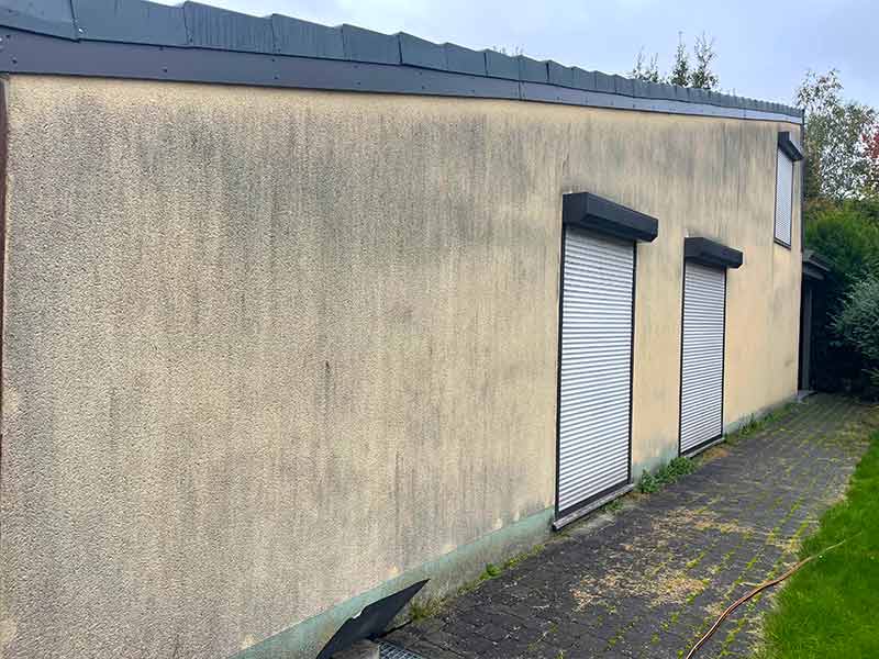Notre méthode repose sur un nettoyage à la bio vapeur, réalisé à 150 °C et sous une faible pression d’environ 30 bars, ce qui préserve l’intégrité des matériaux tout en éliminant efficacement les impuretés. Aucun produit chimique nocif n’est utilisé : la vapeur dissout les salissures, puis une seconde phase de nettoyage permet d’obtenir une façade parfaitement saine. Afin de prévenir les infiltrations et d’éviter la détérioration du revêtement, nous appliquons ensuite un un traitement anti-mousse façade avec produit biologique, par pulvérisation. Ce produit puissant agit comme un démoussant, nettoyant et détergent curatif. Sans chlore ni acide, inodore et entièrement biodégradable, il élimine durablement les coulures noires et empêche la prolifération des micro-organismes.